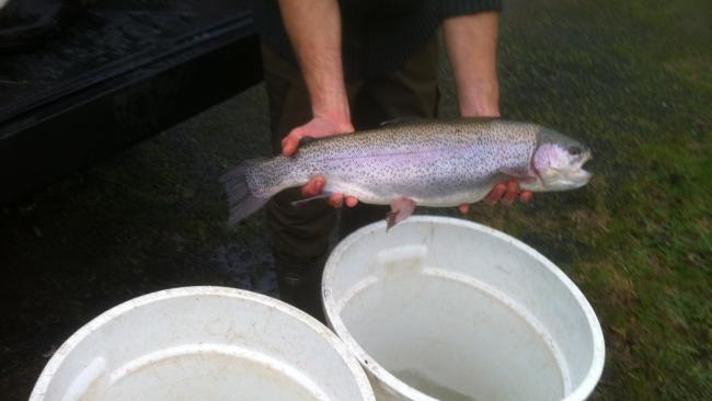 Mardi 06 Mai ont été laché100 kg de truites Arc en Ciel!photo du laché